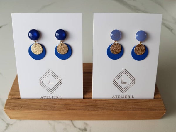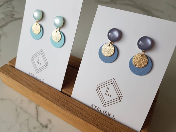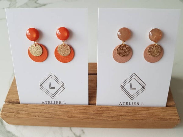 Elegante nikkelvrije oorbel met gekleurde en gouden schijfjes.