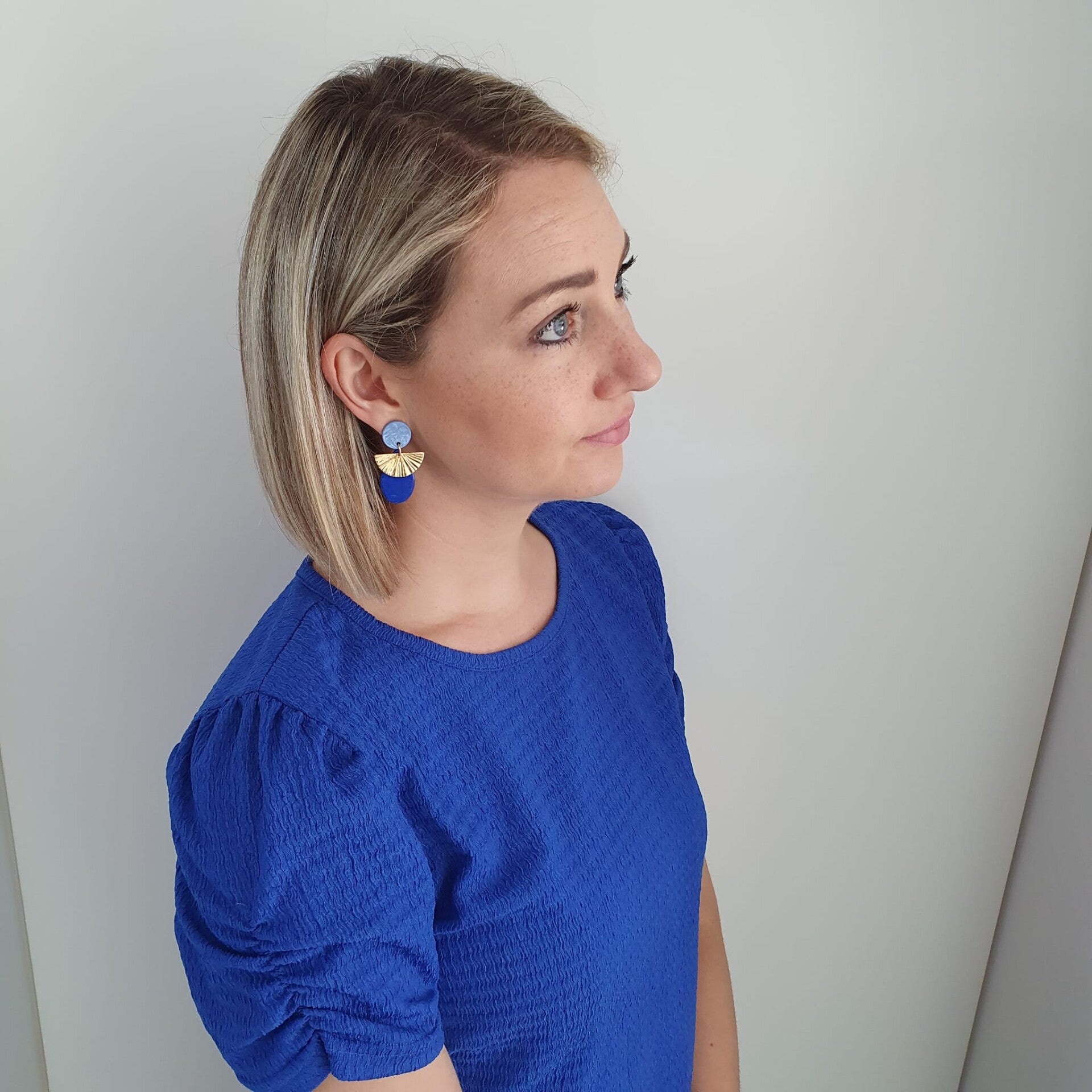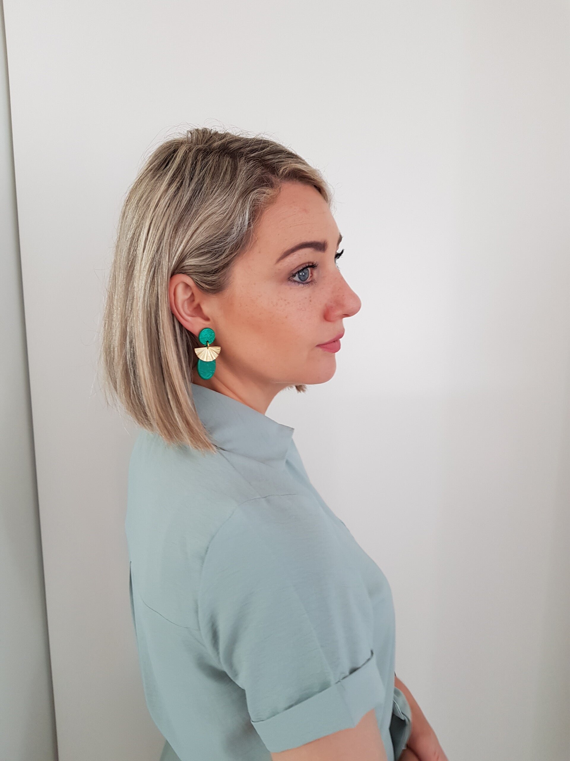 Dit luxe paar oorhangers met een nikkelvrije oorsteker uit 18K verguld 925 zilver, 18K vergulde onderdelen en resin hangers.