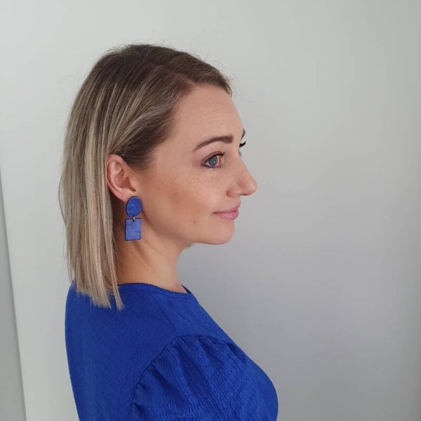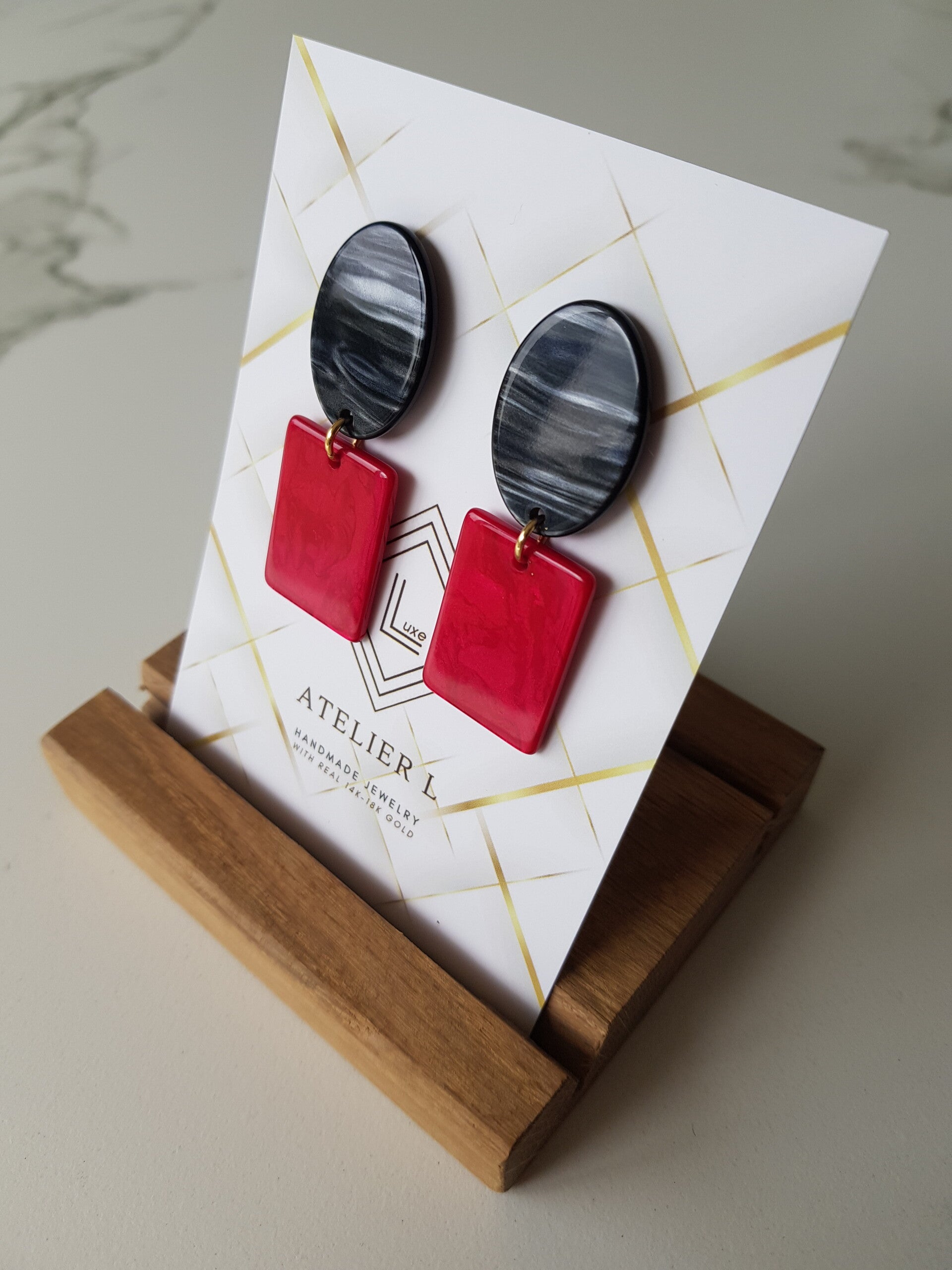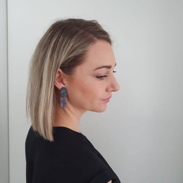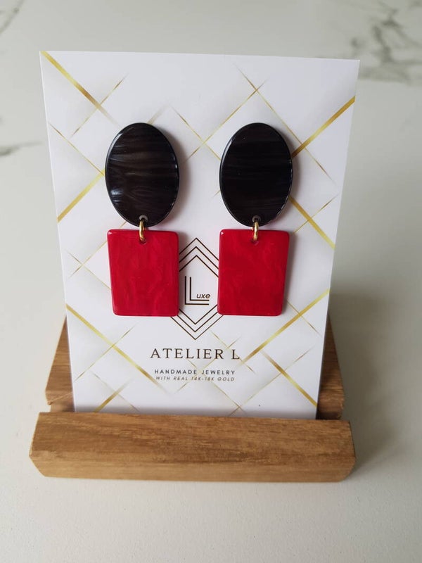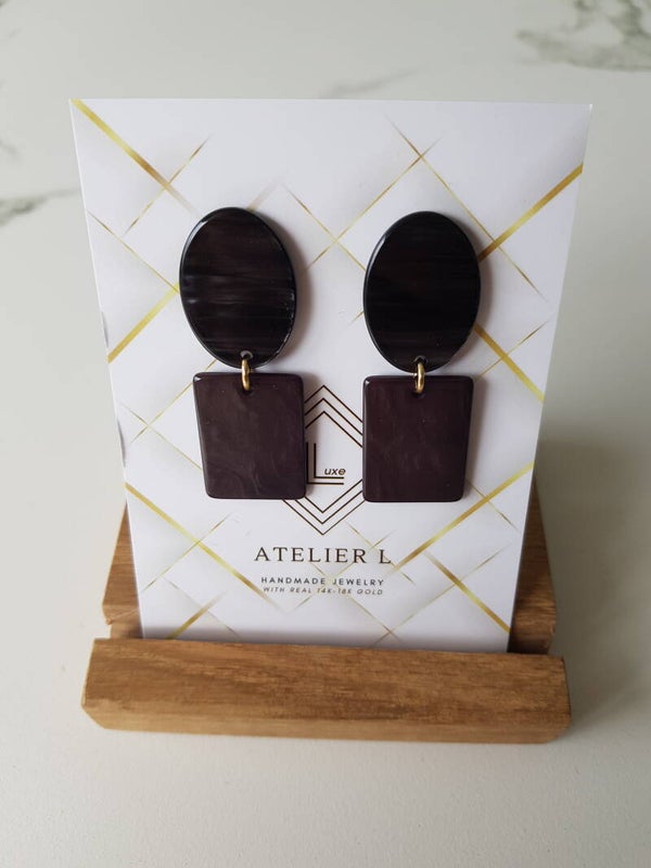 Deze resin oorbellen zijn heel licht om te dragen. Ze werden afgewerkt met een 14karaat vergulde sterling zilveren oorsteker en ring.