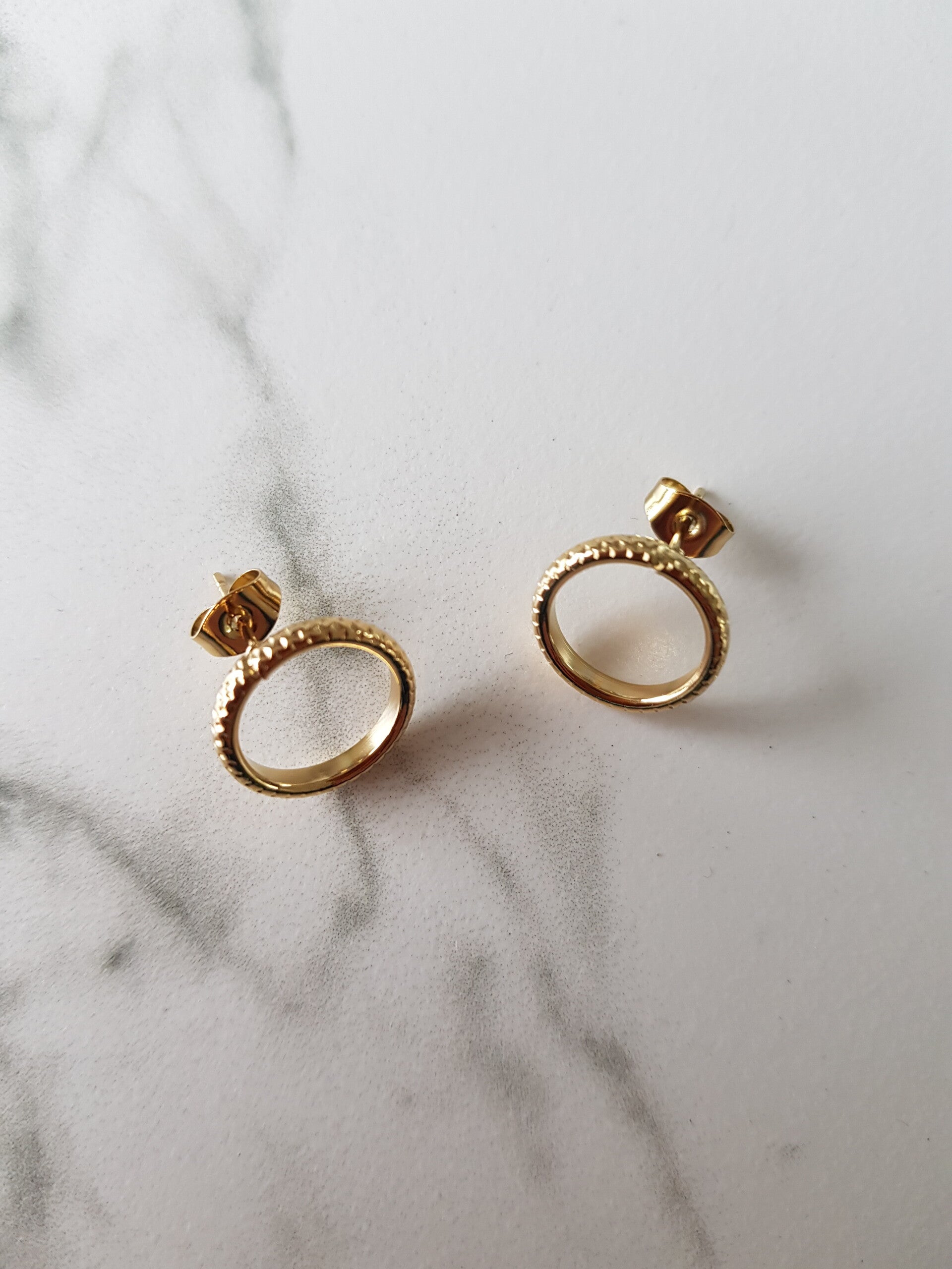 Stainless steel vergulde ronde oorbel met een diameter van 1,3cm.