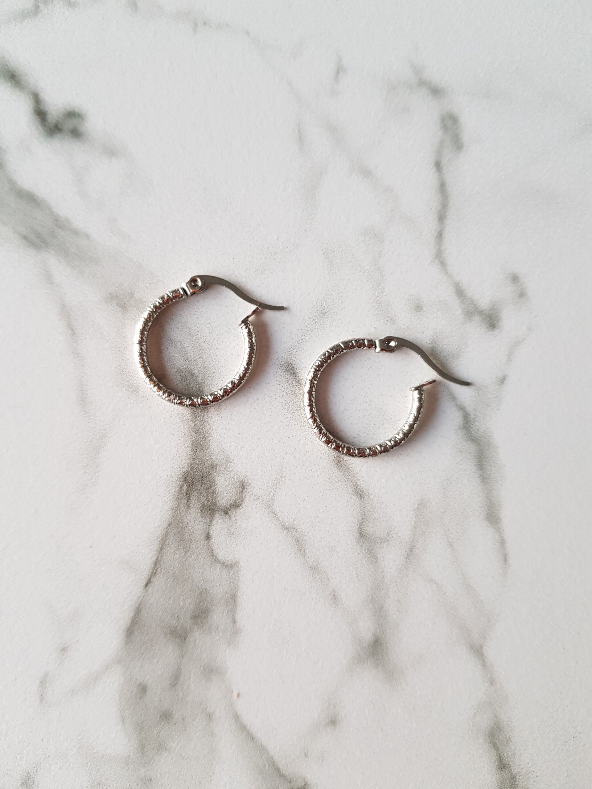 Paar hippe oorbellen uit stainless steel (zilverkleur).