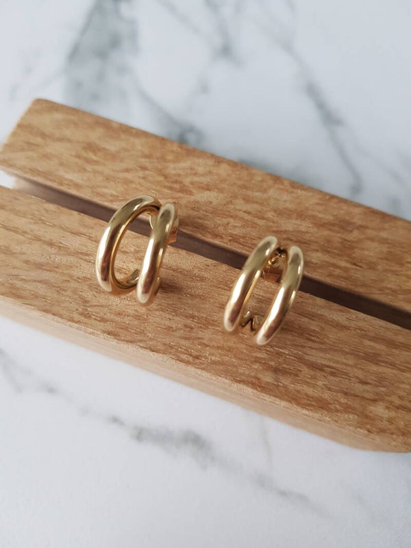 Paar hippe oorbellen uit stainless steel 18 karaat verguld of zilverkleur.