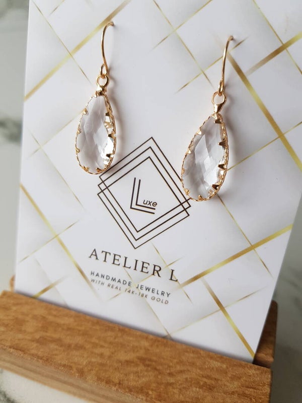 18 karaat real gold plated oorhaakje met facetgeslepen glas omhuld met 18k plated brass.