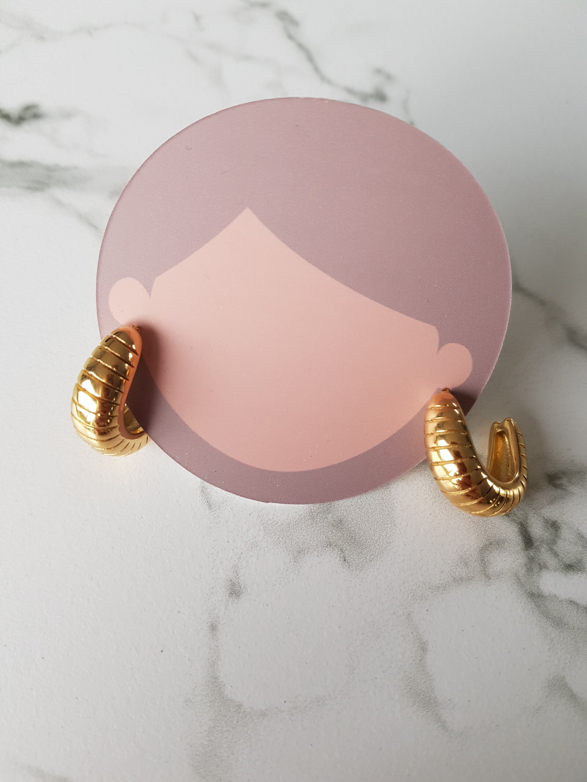 18 karaat vergulde stainless steel oorsteker met strepen.