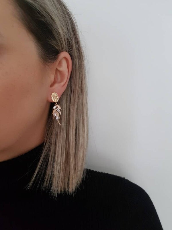 Een paar 18K vergulde nikkelvrije oorstekers (getrommeld design) met daaraan een 18K hanger met zirkonia.
