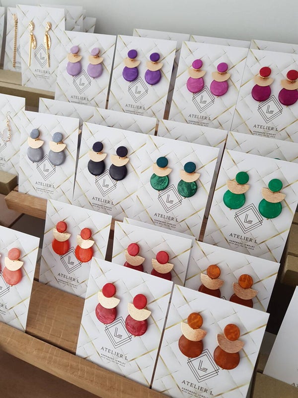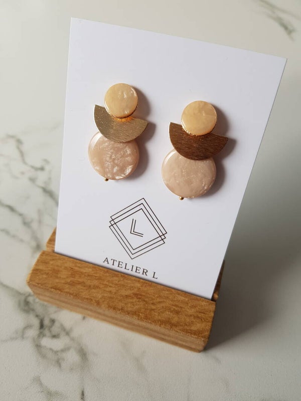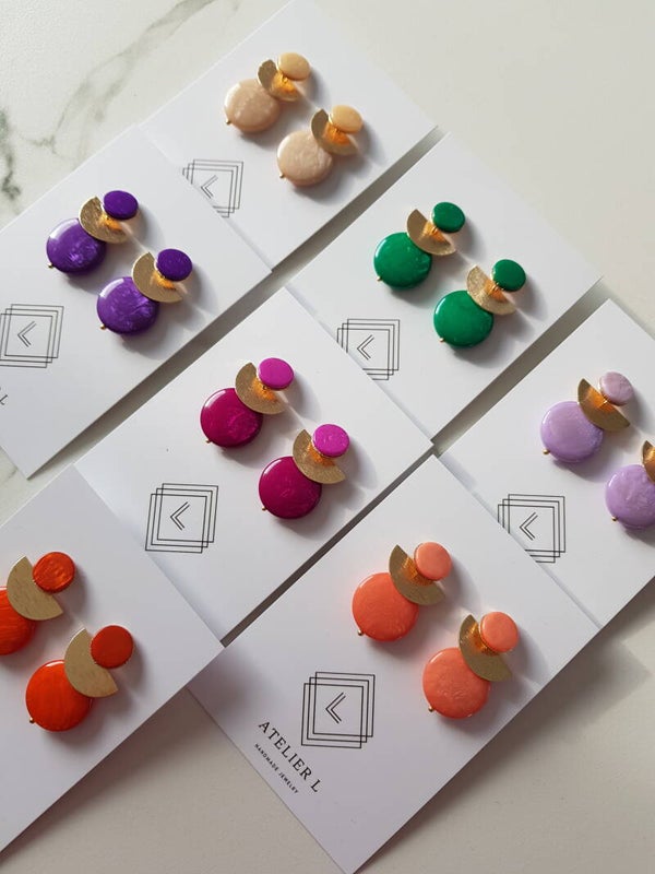 Nikkelvrij paar oorbellen met 18 karaat vergulde details en resin.