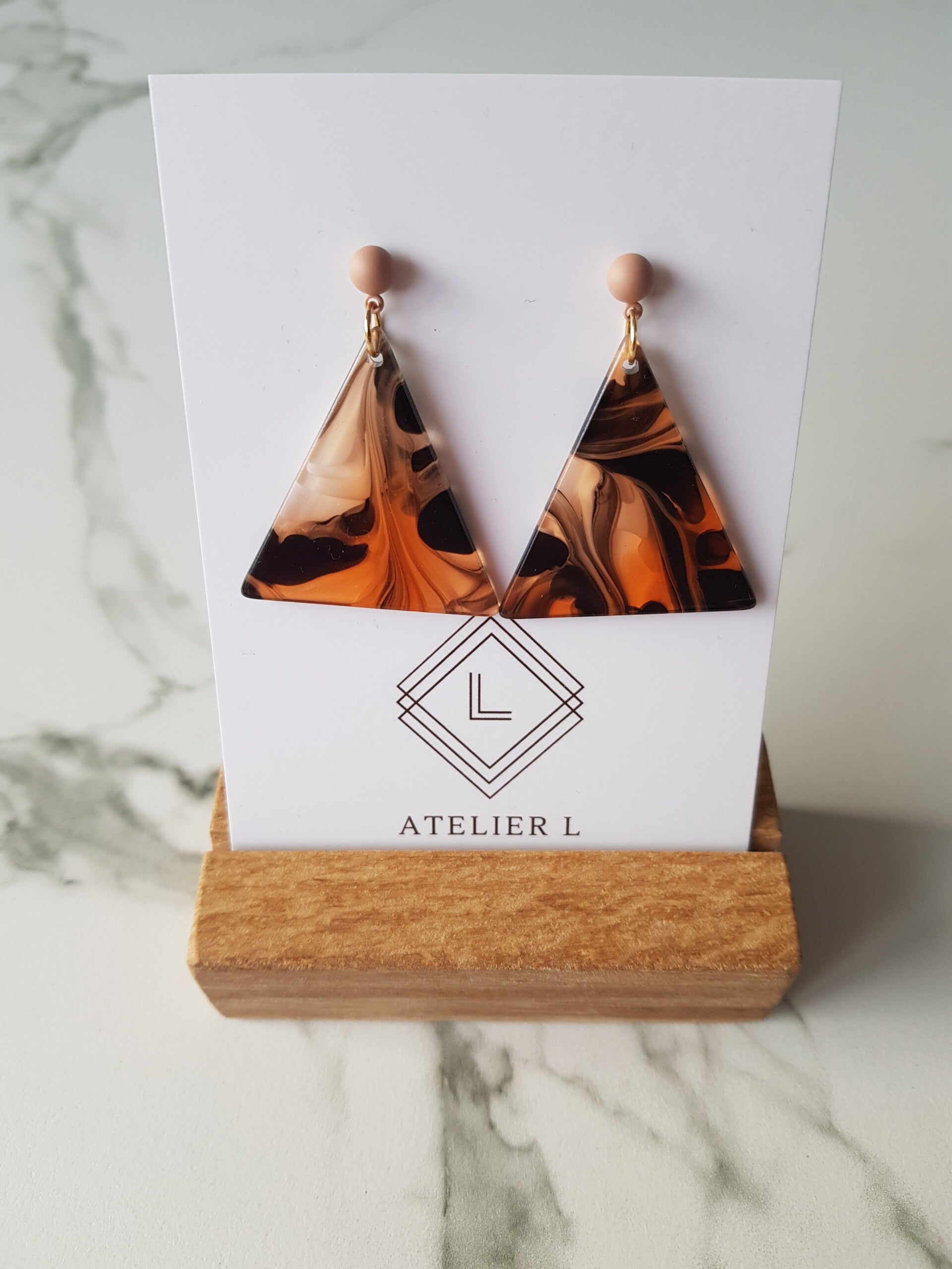 Een combinatie van multicolor resin met nikkelvrij gekleurd oorknopje. Elke oorbel heeft een unieke tekening.