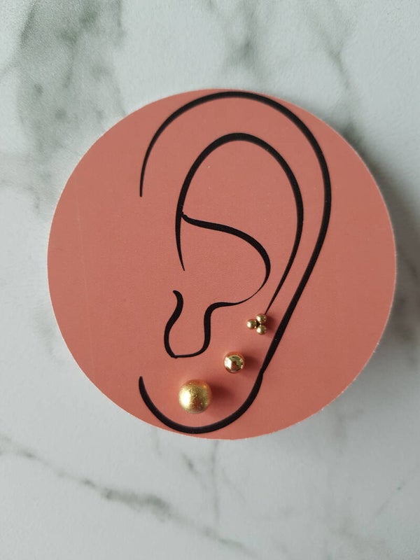 Een set van 3 kleine oorbellen uit 18 karaat verguld stainless steel.