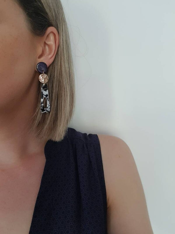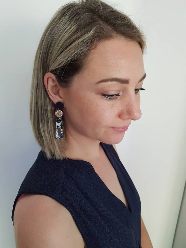 Stainless steel oorsteker met 18 karaat vergulde details en resin.