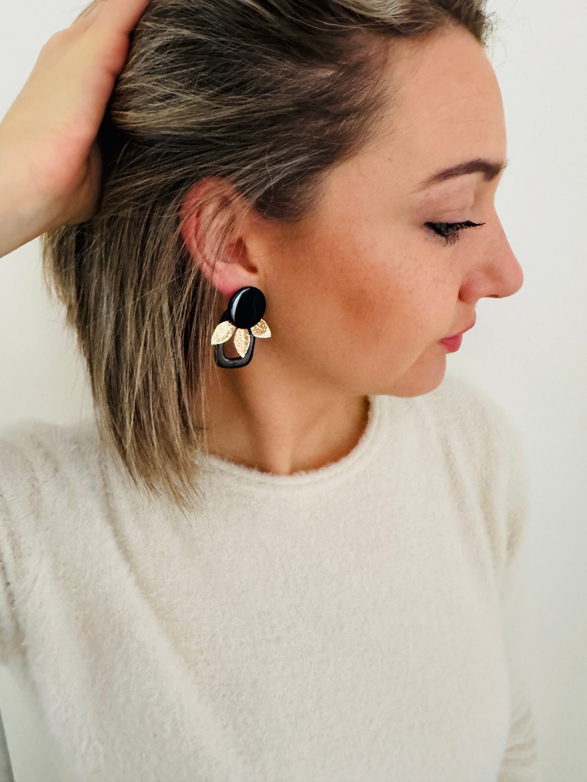 Nikkelvrije oorsteker met 18 karaat vergulde details en resin hanger.