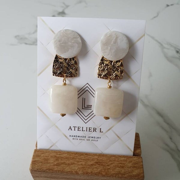 Statement oorbellen die onmiddelijk de aandacht trekken. Afgewerkt met 18K vergulde onderdelen.