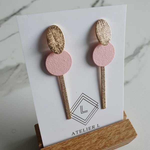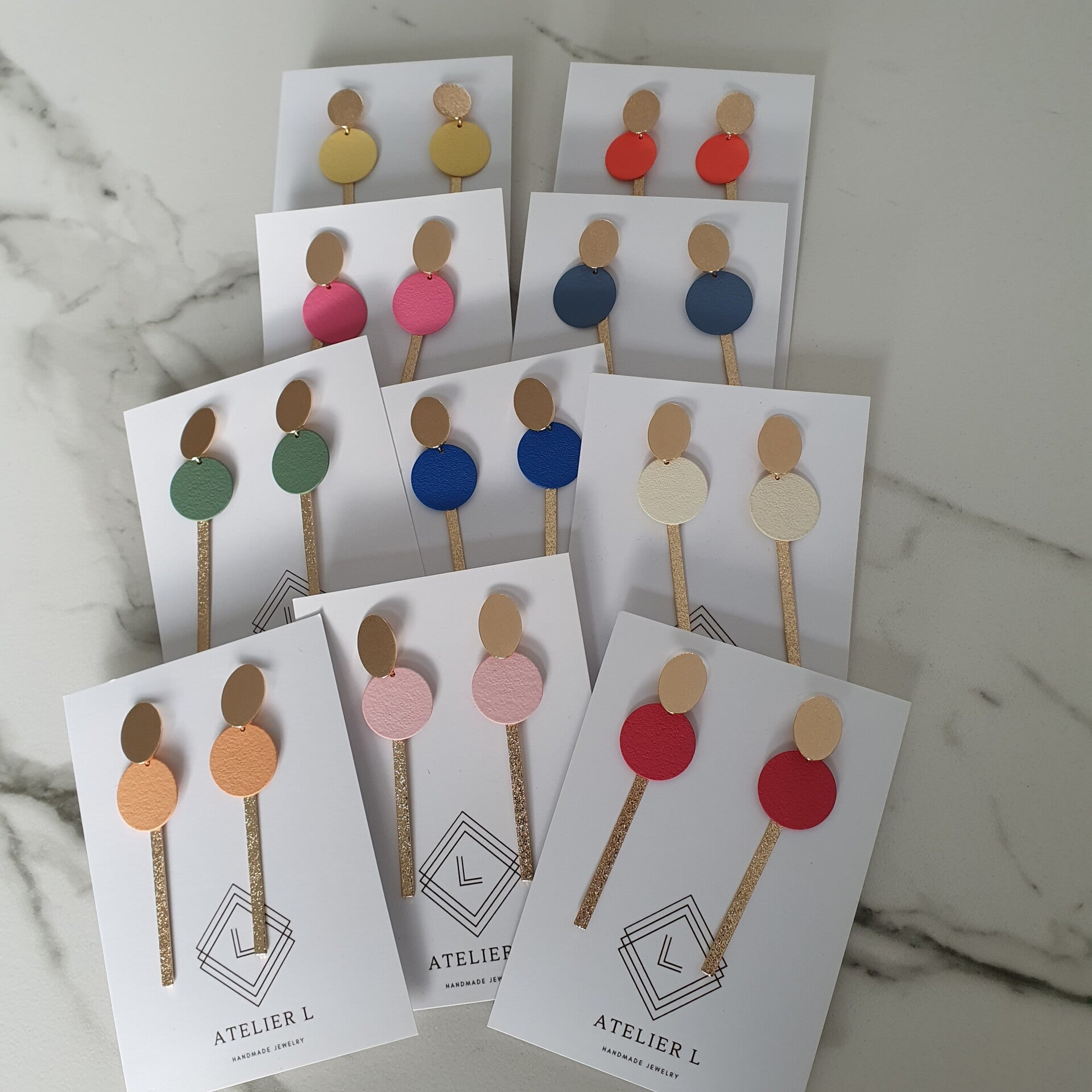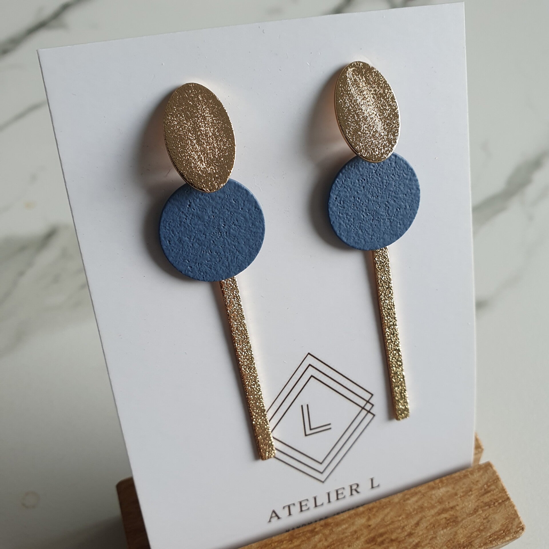 18 karaat gouden oorknop met berubberd kleurschijfje en gouden relief staafje